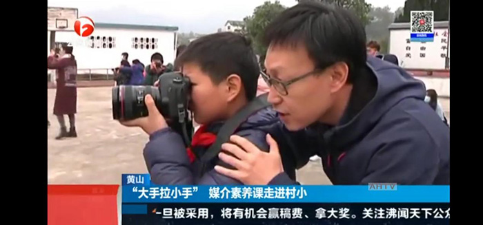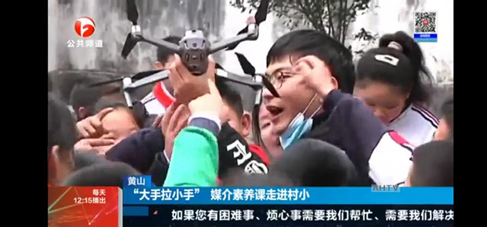 12月12日中午,安徽广播电视台公共频道《新闻午班车》栏目在新闻核心版块,以题为《黄山:“大手拉小手” 媒介素养课走进村小》报道了文化与传播学院师生致力乡村小学媒介素养教育。