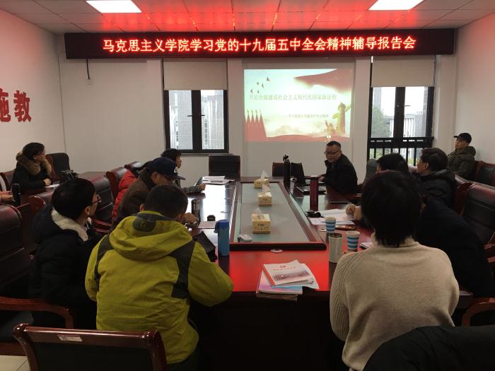 12月9日下午,马克思主义学院在该院会议室举行学习党的十九届五中全会精神辅导报告会。校宣讲团成员、该院党总支书记曾小保作题为“开启全面建设社会主义现代化国家新征程”主题报告。该院全体教师参加报告会。