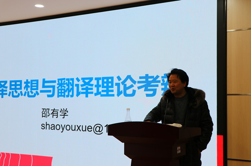 12月9日下午,外国语学院在逸夫综合楼5306教室举办“教授•博士”讲坛。邵有学教授做客讲坛,作题为“翻译思想与翻译理论考辨”主题学术报告。报告会由外国语学院党委书记、院长黄先进主持,该院全体教师及翻译方向学生参加报告会。