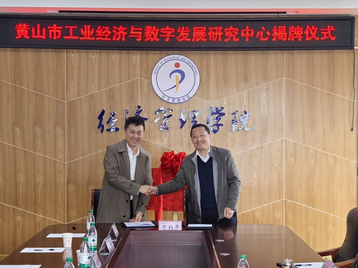 为深化校地协同创新,助力黄山市工业数字化信息化转型发展,4月3日上午,“黄山市工业经济与数字发展研究中心”签约、挂牌仪式在我校经济管理学院会议室举行。仪式由该院相关负责人主持。