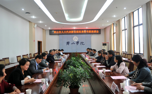 4月27日下午,黄山市人大常委会副主任舒志民率黄山市六届人大代表黟县联组一行来校考察,双方就我校高水平大学建设、黄山市经济社会发展和全面深化校地合作等领域进行深度座谈。校长汪建利出席座谈会,副校长胡善风主持座谈会。办公室、组织部、教务处、学生处、科研处、旅游学院等有关部门、学院负责同志参加座谈。