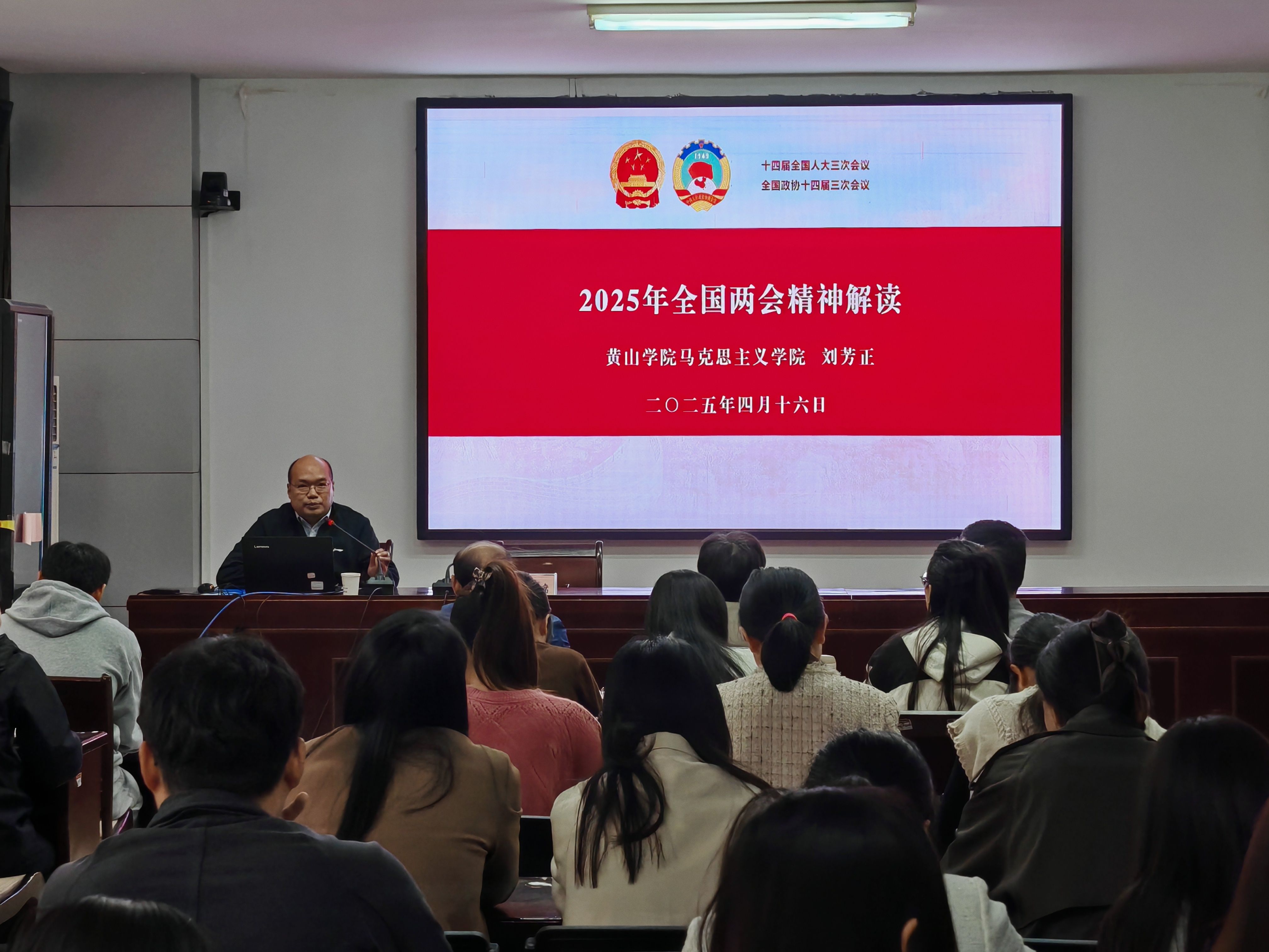 会上,马克思主义学院副教授刘芳正作2025年全国两会精神辅导报告。报告重点解读了习近平总书记在两会期间的系列重要讲话精神,从全过程人民民主的生动实践角度阐述了两会召开的重要意义,从聚焦发展大局、回应民生关切角度解读了政府工作报告,特别对2025年涉及教育、就业等工作任务进行了重点宣讲。