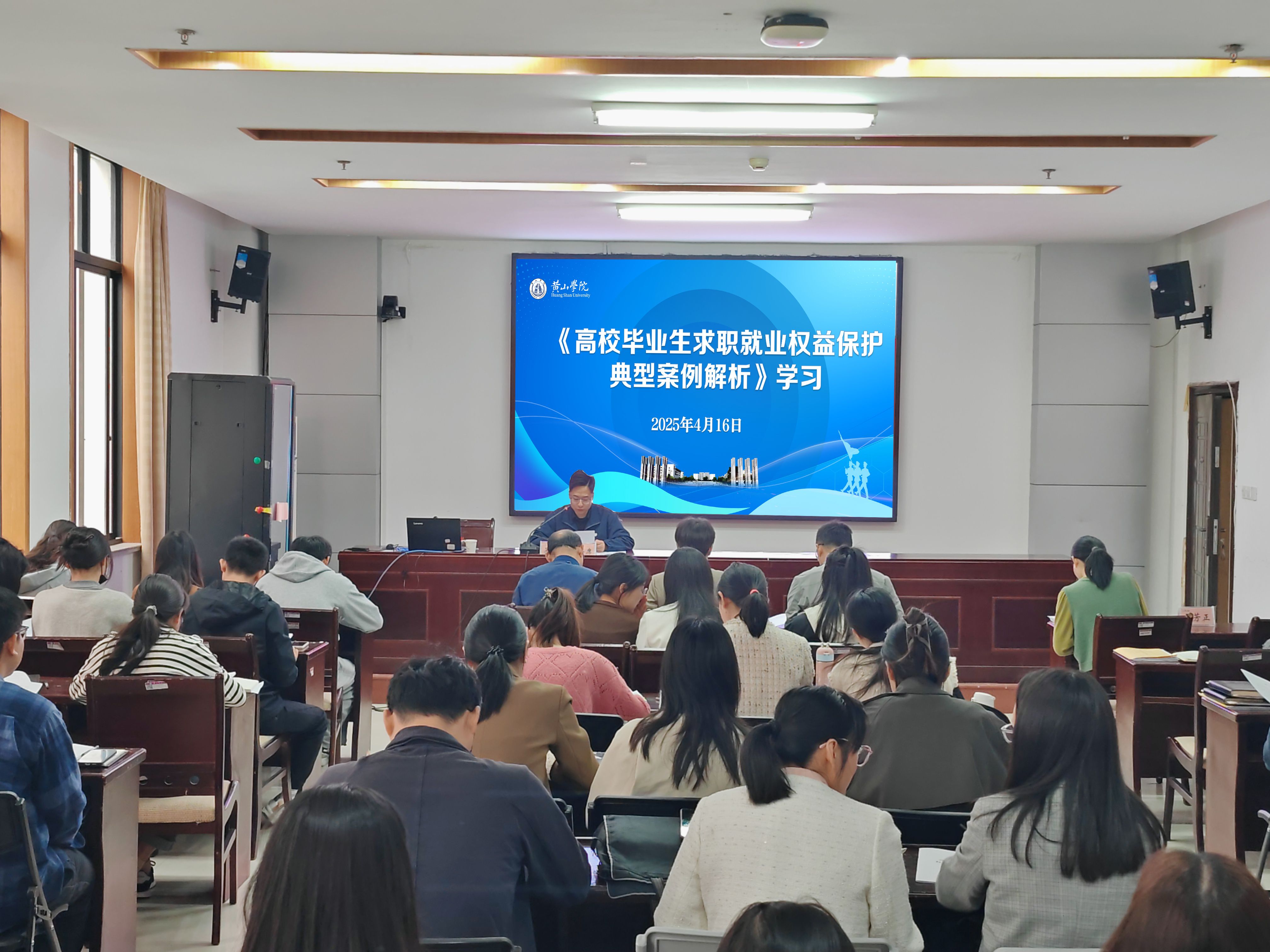 经济管理学院专职辅导员吴伟航领学了《高校毕业生求职就业权益保护典型案例解析》,对典型案例、风险提示以及相关法律条款、权益保护要点和维权策略等进行了重点解读,就辅导员们如何指导毕业生在求职就业中规避风险、维护自身合法权益,进行了针对性培训。