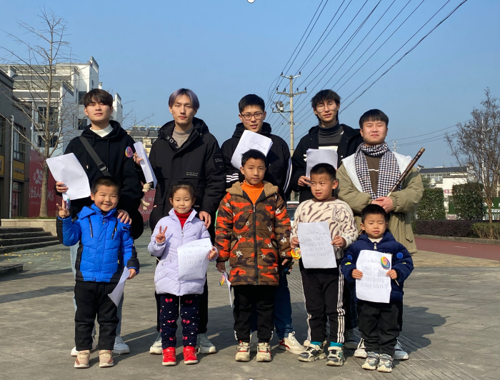 活动现场,志愿者与当地留守儿童积极互动,同时带来了竹笛曲目《我爱北京天安门》的演奏。期间,小组成员详细地介绍了竹笛的结构以及持笛姿势和手型的基础教学内容,小朋友们认真听讲,现场氛围愉悦而温馨。活动最后,志愿者为大家带来小曲目《送别》的现场演唱教学示范,小朋友们用甜美的童声认真学习歌唱。