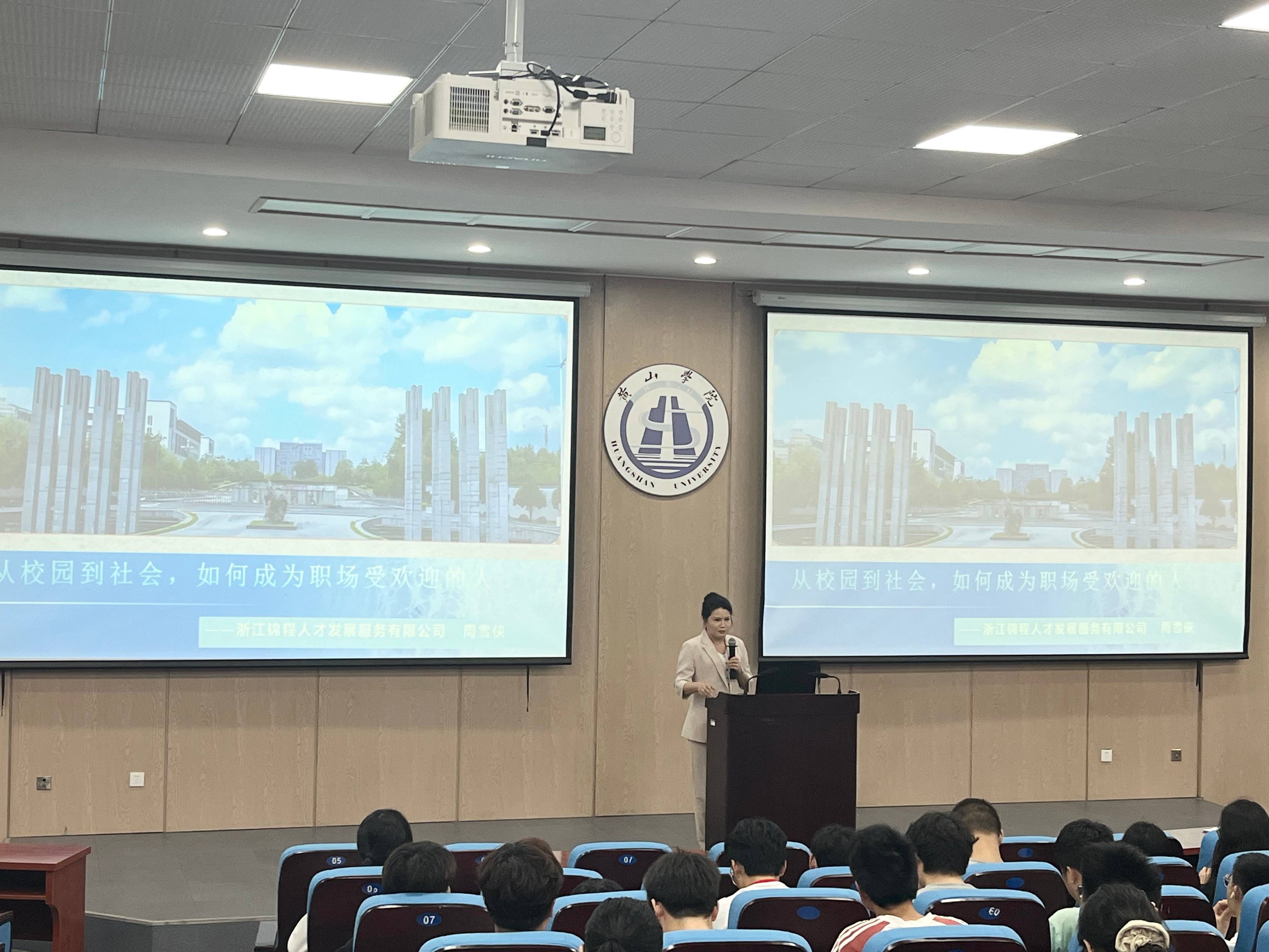 4月23日下午,我校在率水校区文端楼一楼报告厅举办“职通未来”第二期专题报告会。本次活动特邀浙江锦程人才发展有限公司总经理、国家二级人力资源管理师、资深职业规划导师周雪侠担任主讲嘉宾。学生处相关负责人和300余名学生参加报告会。