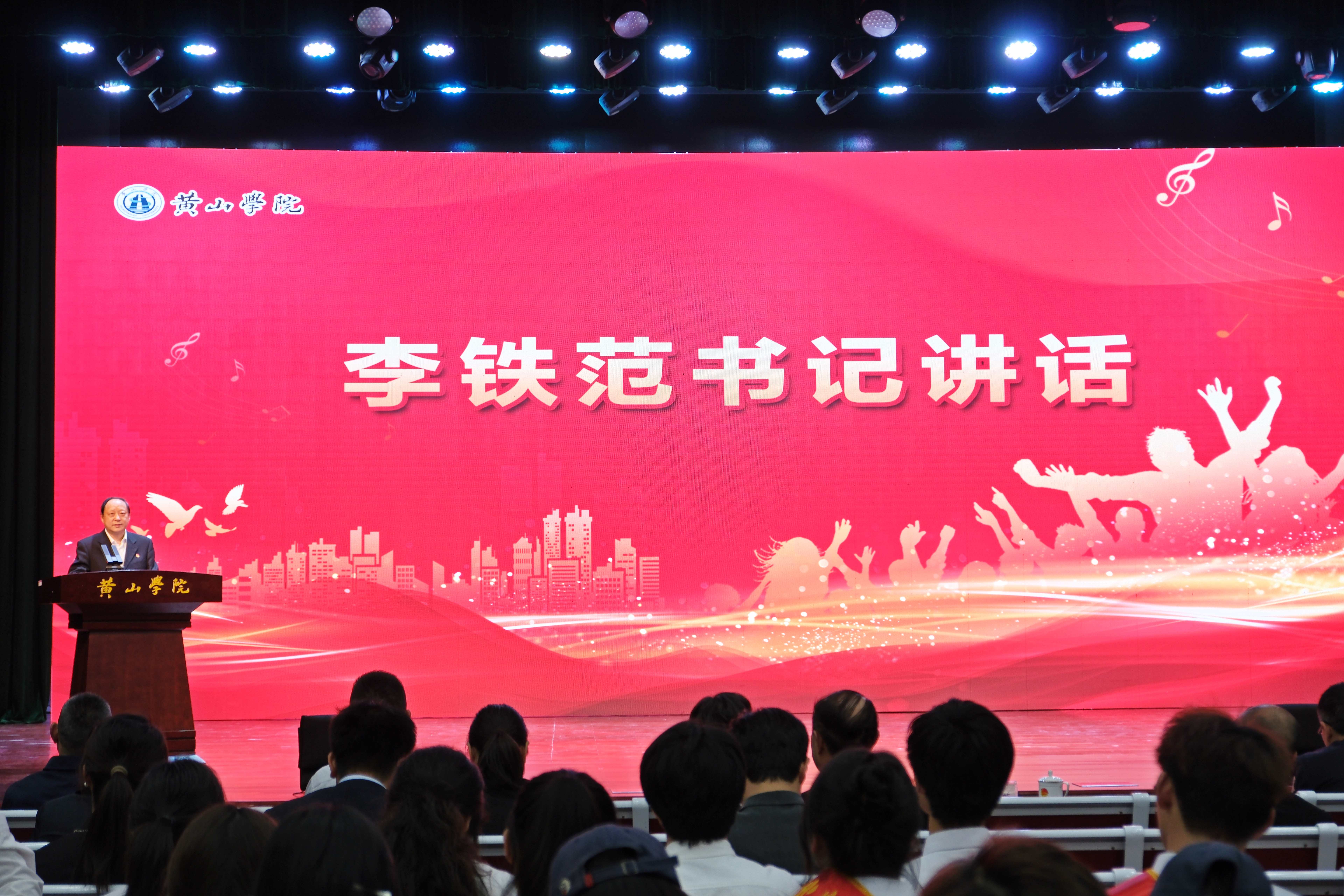 4月27日下午,在“五四”青年节来临之际,我校在率水校区大学生活动中心大礼堂举行“薪火赓续心向党 挺膺担当砺青春”青春榜样风采展活动。校党委书记李铁范、校党委副书记章文静出席大会,学工委成员单位负责人、各学院党组织负责人、校院两级团干部及团员代表约1000人参加活动。