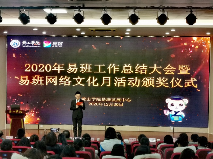 12月30日晚,我校易班发展中心2020年易班工作总结大会暨易班网络文化活动月颁奖仪式在文端楼二楼报告厅举行。学生处领导班子、学院分管学生工作领导、校院易班发展中心指导老师、专兼职辅导员、校院易班学生工作站成员以及2019、2020级易班班长参加了此次活动。
