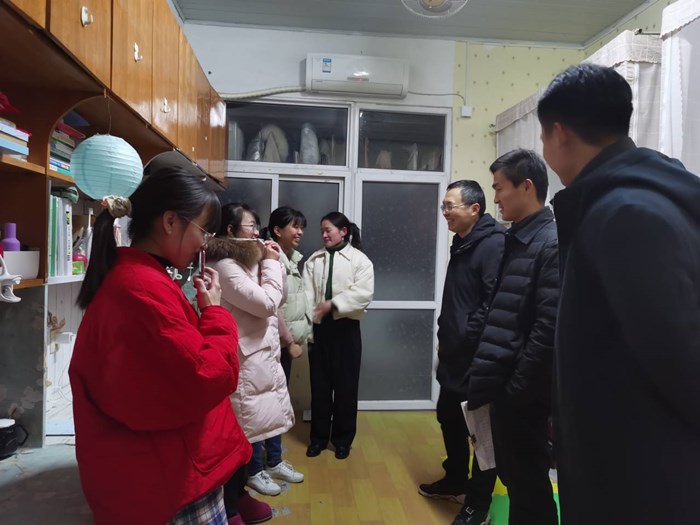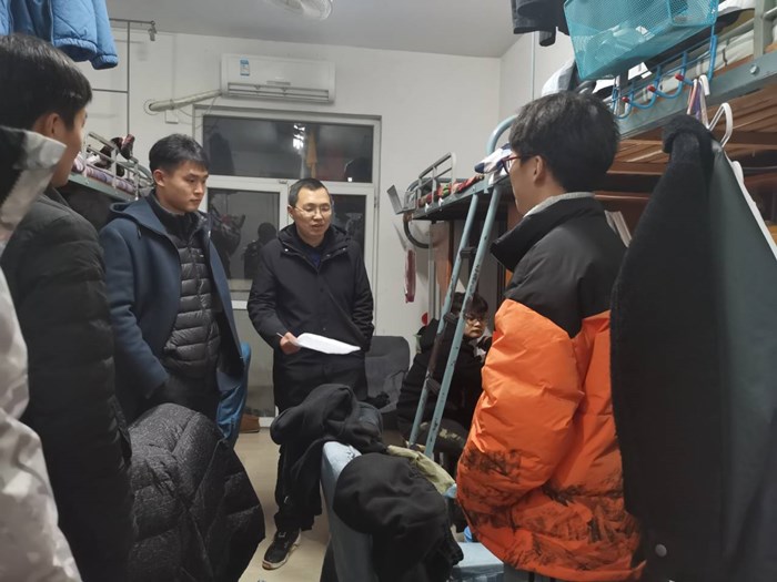 年关将至,气温骤降。为提高学生用电安全意识,排除安全隐患,12月30日晚,生环学院党委副书记万志兵及全体辅导员走访学生宿舍。