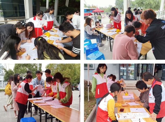 系列活动包括无偿献血宣传活动、无偿献血公益活动等共8次。每一次的活动,志愿者们都一丝不苟地去完成,随着天气的日渐寒冷,志愿者也丝毫没有退缩,继续坚持服务参加无偿献血的师生们。