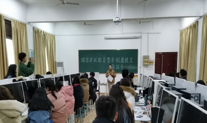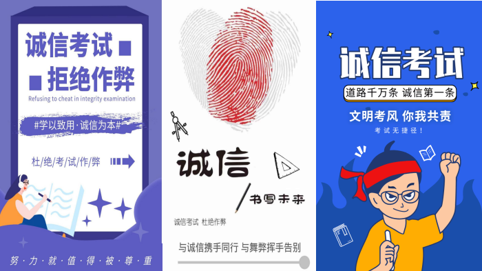 本次“诚信迎考”系列活动依据各班级专业特色,分为“诚信迎考”宣传海报设计、“诚信迎考”誓师签名大会、诚信公益纪录片观影活动、“诚信迎考”班会、“党员亮身份,诚信我先行”活动五个板块。一幅幅匠心巧妙的海报设计展现了学生的专业风采,用作品立下了诚信迎考的信心;一篇篇感人至深的观影心得书写了良性竞争、诚信立身的重要性,是勇于诚信迎考的战书;一个个坚定紧握的拳头是学生恪守诚信、自强不息的决心;一个个鲜艳耀眼的铭牌是学生党员亮身份、做表率的通行证。此外,各班级辅导员均开展了“诚信迎考”主题班会,引导学生培养诚信考试意识,积极调整心态,认真复习备考,杜绝舞弊行为,自觉诚信考试。