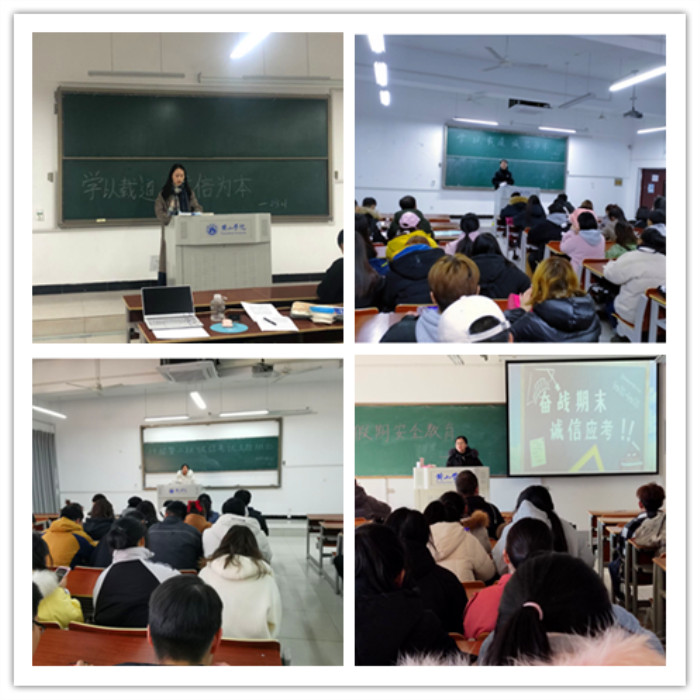 随着期末考试的临近,该院各班级陆续开展“学以载道·诚信为本”主题班会。会上,各班级辅导员倡导广大学生积极备考,拒绝侥幸心理,提升个人素质,严厉拒绝一切考试作弊行为,并就《博业体育(中国)官方网站-登录入口全日制学生考试工作规定》和考试纪律对同学做出明确要求,希望同学们诚信考试。