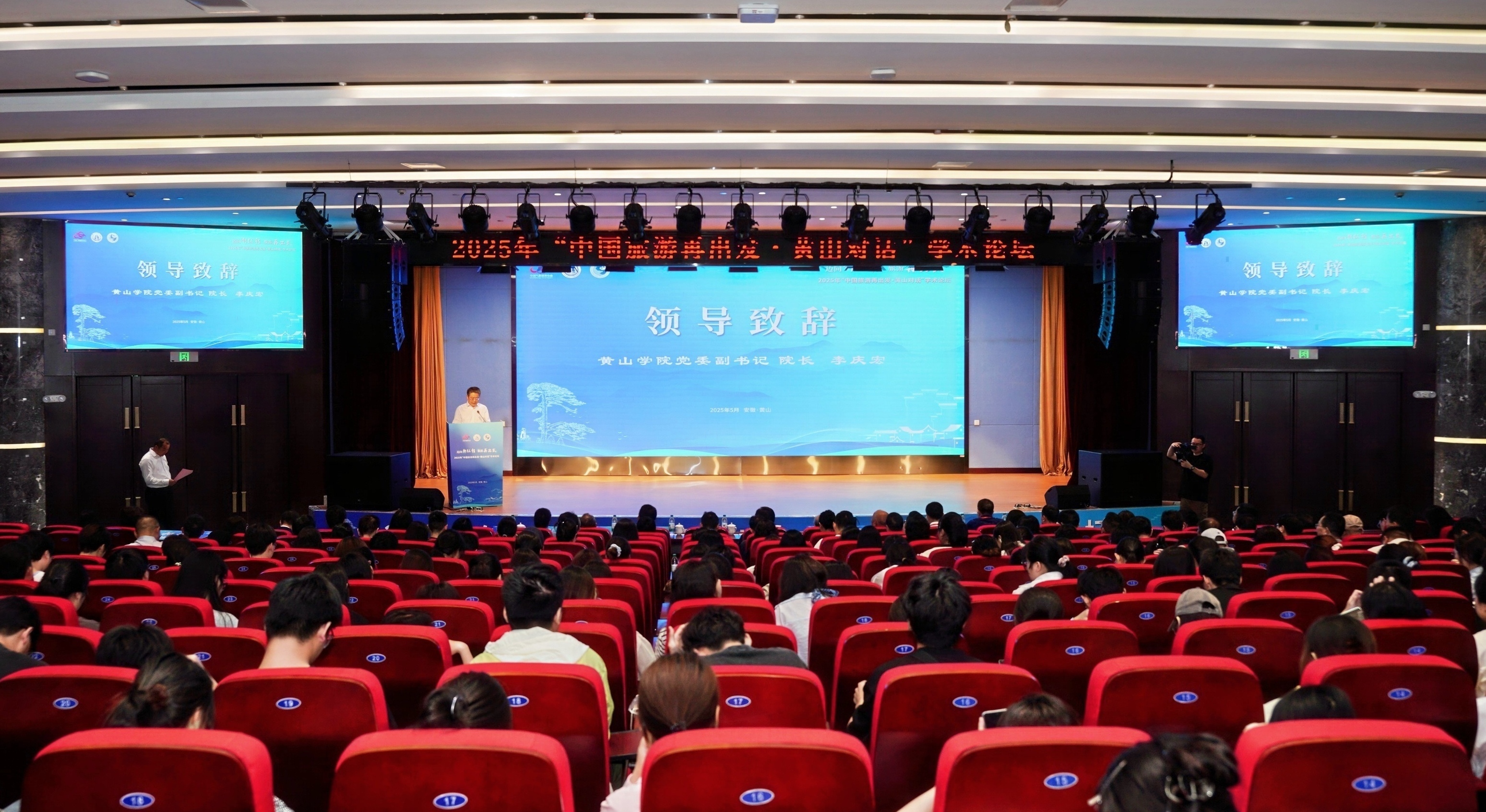 5月16日至18日,博业体育(中国)官方网站-登录入口与中国气象服务协会联合主办的“中国旅游再出发·黄山对话”学术论坛在我校文博楼二楼报告厅举行。校党委副书记、院长李庆宏,安徽省文旅厅副厅长邵海卫出席活动,来自厦门大学、南开大学、海南大学等高校及文旅行业的160余位专家学者共聚黄山,探讨中国旅游业高质量发展路径。开幕式由博业体育(中国)官方网站-登录入口学术副院长、中南财经政法大学邓爱民教授主持。
