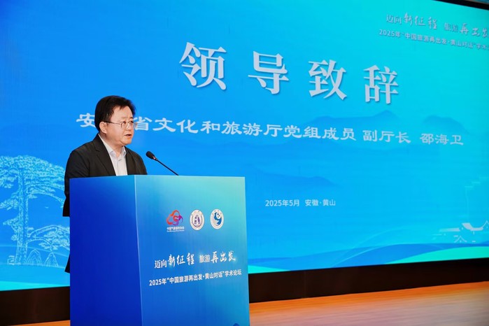 李庆宏回顾了学校旅游学科40年的发展历程,强调学校始终对接国家战略,构建覆盖全产业链的人才培养体系,致力于培育复合型领军人才。邵海卫指出,安徽正深化文旅融合、打造国际旅游目的地,期待论坛为全省及全国旅游业注入新思路。