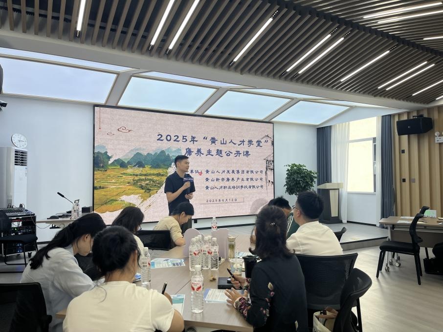 6月12日,黄山人才发展集团有限公司、黄山新安康养产业有限公司、黄山人才职业培训学校有限公司联合举办“2025年黄山人才学堂”康养主题公开课活动,黄山市50余家企业代表及导游员协会成员积极参与。旅游学院陈铮博士应邀参会,并作题为《康养旅游实践原理》的讲座。