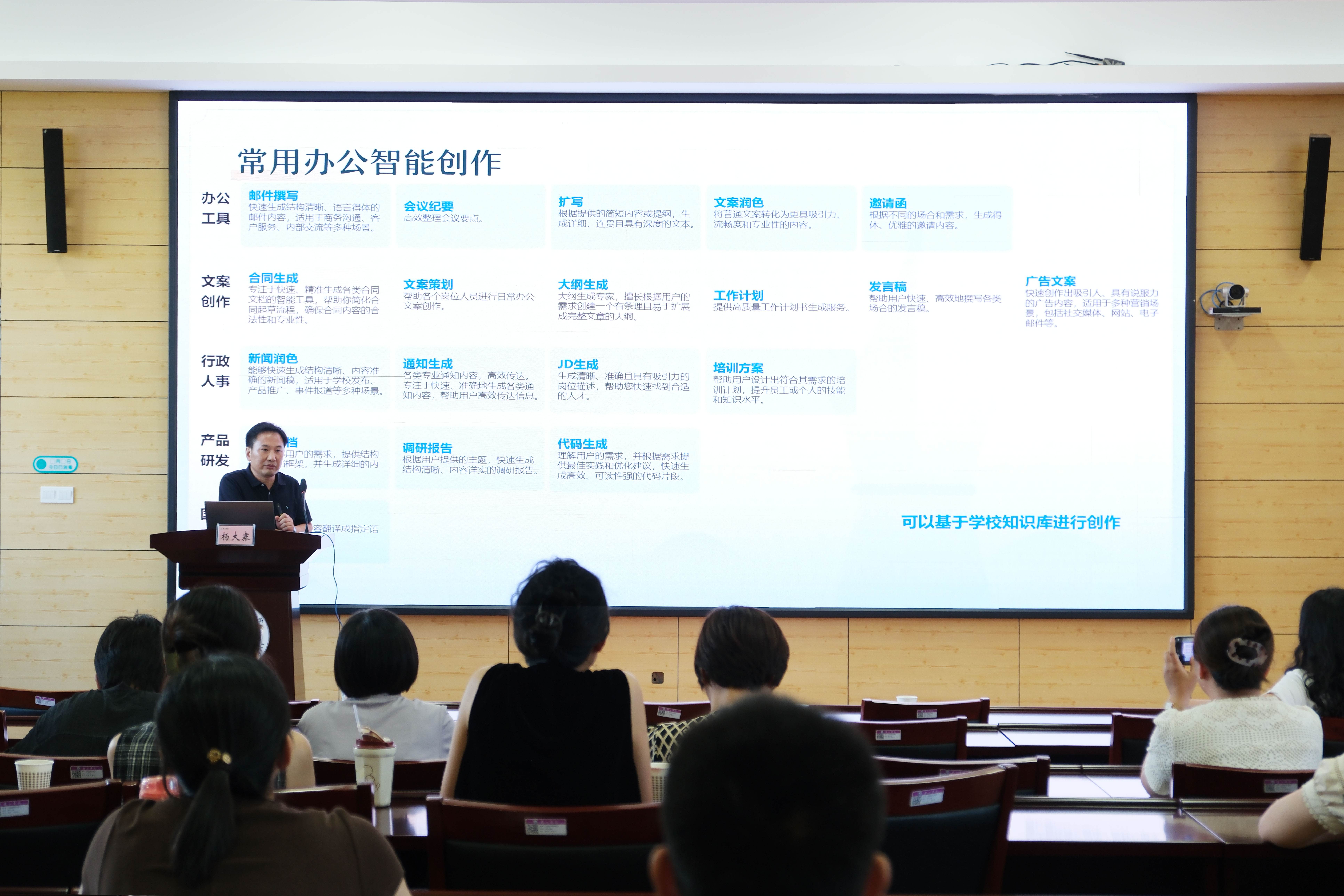此次培训班的举办是学校深化数字化转型、提升治理能力现代化的重要举措。通过聚焦人工智能与办公场景的深度融合,学校将进一步推动行政工作从“经验驱动”向“数据驱动”“智能驱动”转型,为学校高质量、特色化、内涵式发展注入新动能。