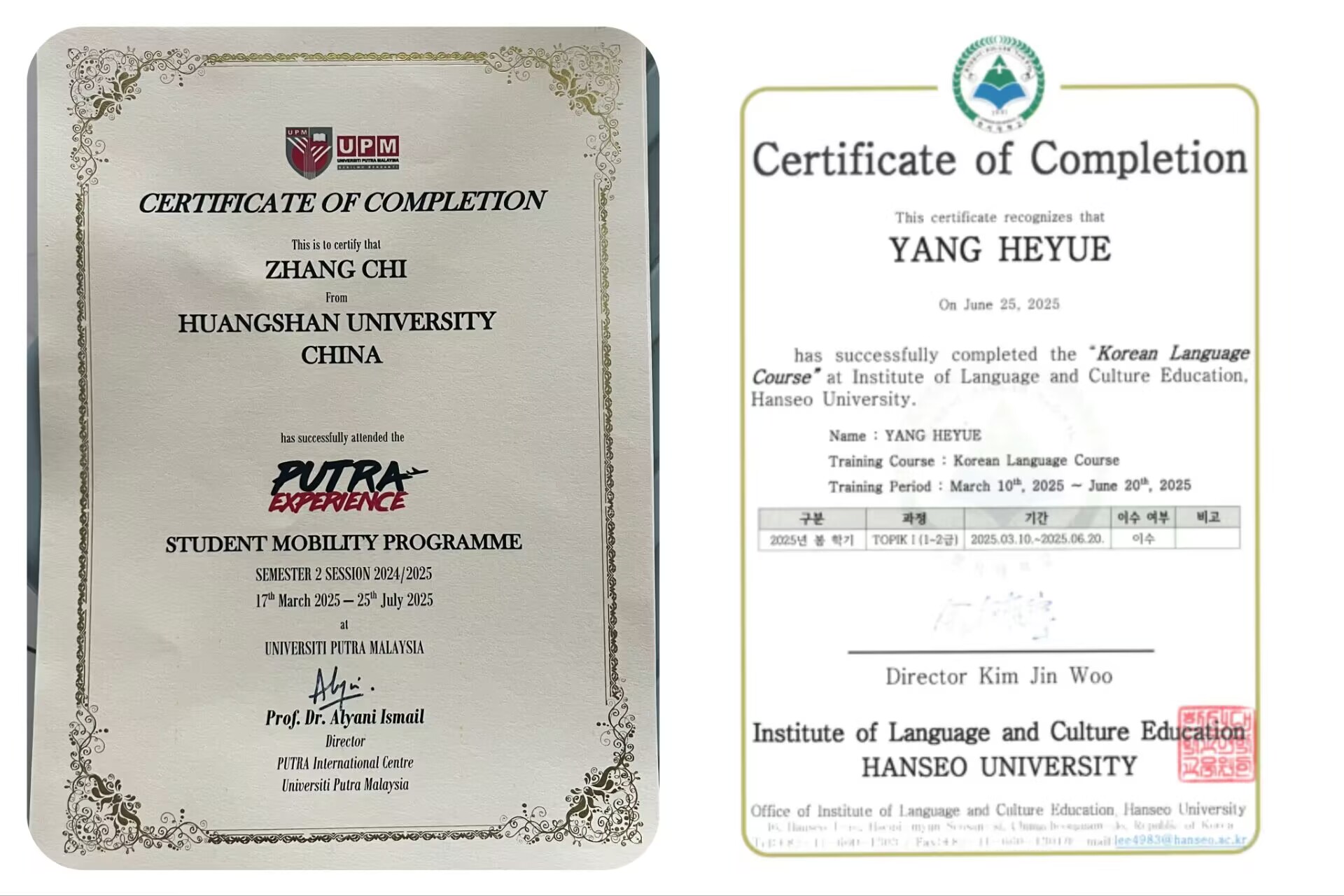 近日,文学院2025届汉语国际教育专业学生张驰和杨何月分别完成在马来西亚中国教育协会和韩国韩瑞大学为期4个月的毕业实习,顺利归国返校。
