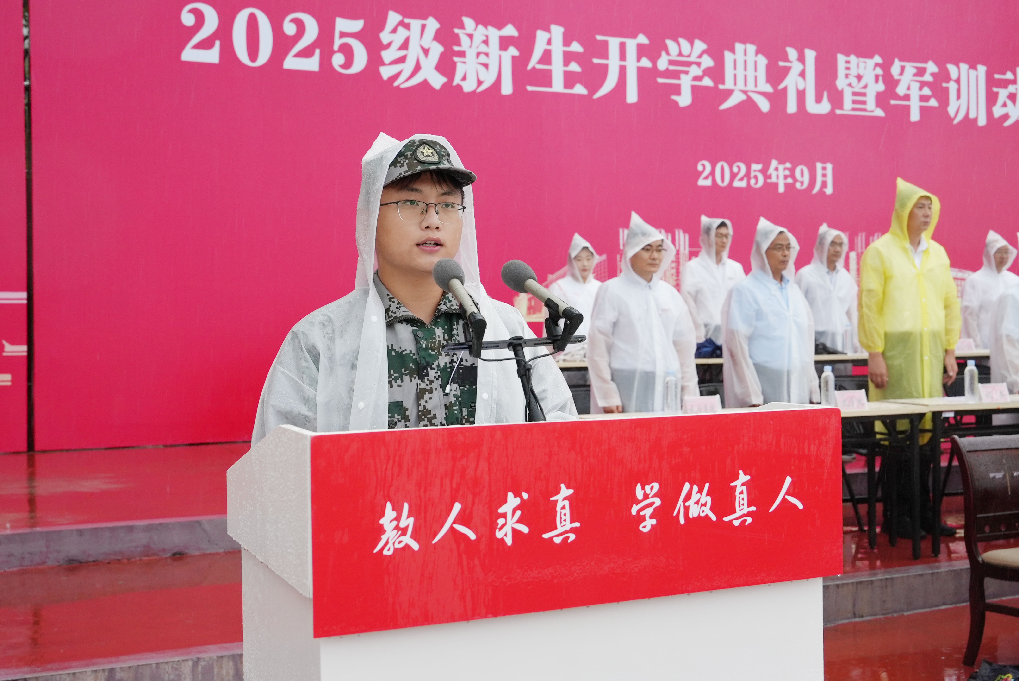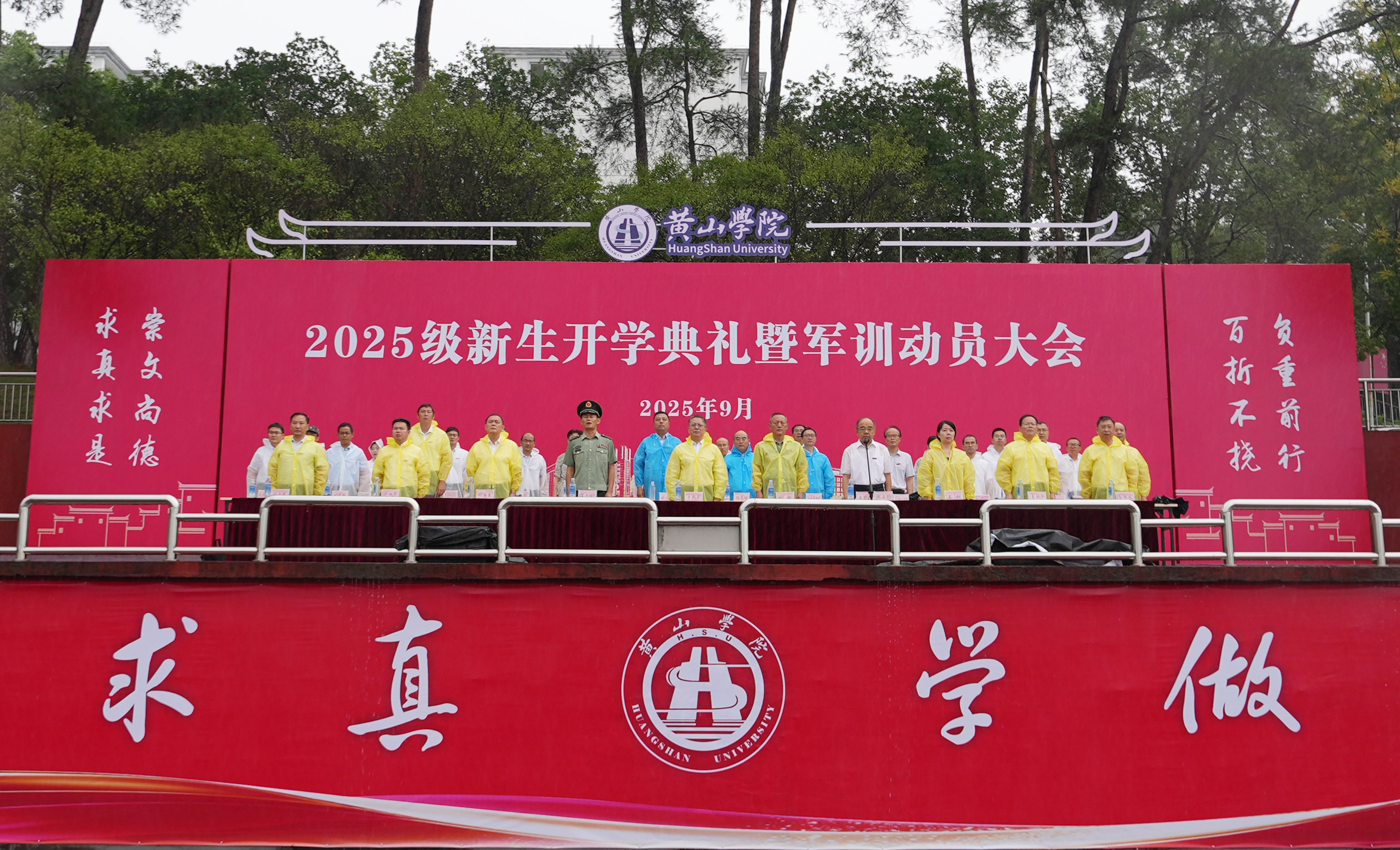 各学院、有关部门负责人,武警黄山支队的官兵以及2025级全体新生参加典礼。