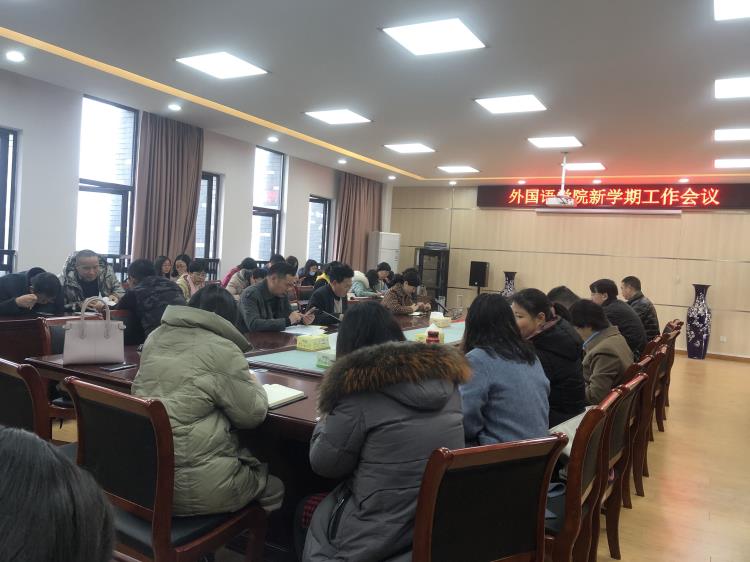 为迎接新学期开学和学生返校,3月4日上午,外国语学院在逸夫综合楼5402会议室召开了新学期开学工作部署会议,外国语学院全体教教职工参加会议,会议由学院党委书记、院长黄先进主持。