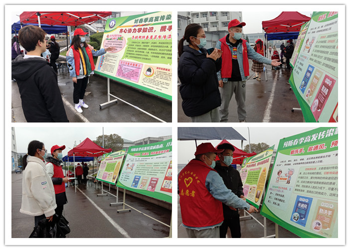 穿戴红马甲的志愿者为同学们发放口罩,介绍当前我国疫情防控形势,并结合展板,详细地为他们讲解新冠肺炎防护知识及常见的春季流行病防护要点。大量同学被吸引过来,现场秩序井然,气氛活跃。活动结束后,志愿者纷纷表示受益匪浅。