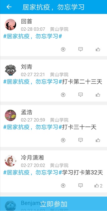因疫情影响,有部分课程延期考试,为帮助学生充分利用寒假时间自主学习,学生处把疫情防护和自主学习结合起来,发起“居家抗疫,阅读相伴”读书倡议,组织开展了“居家抗疫,勿忘学习”学习打卡、“居家抗疫,花样锻炼”视频征集、“青春战疫,你我同行”主题征文等活动。鼓励学生通过参与活动制定假期学习计划和目标,他们相互监督打卡,分享学习心得和技巧,表达对青春战疫的理解,向抗疫工作者致敬,在学习的同时不忘锻炼,增强身体素质,通过安全、文明、绿色的运动项目,争做向上向善好青年,努力塑造青春、活力、朝气蓬勃的当代大学生形象。其中“居家抗疫,勿忘学习”学习打卡活动轻应用页面浏览量达6300余人次,评论留言3300余条,“居家抗疫,花样锻炼”视频征集活动轻应用页面浏览量达1000余人次,评论留言300余条,“青春战疫,你我同行”主题征文活动轻应用页面浏览量达1500余人次,评论留言600余条。