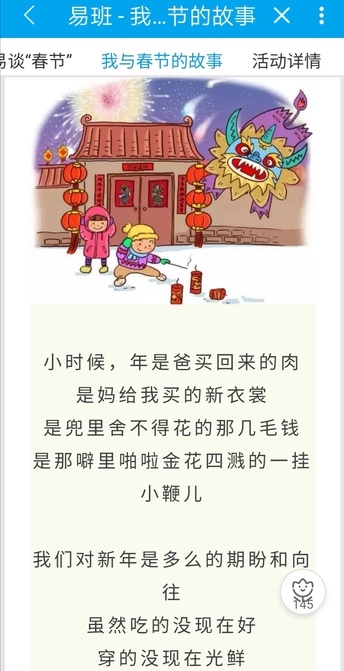 小易半月谈是我校易班的一项品牌主题活动。“我和我的家乡”主题活动让学生更多的了解关于家乡的人土风情、名胜古迹、历史文化、地域优势等,活动轻应用页面浏览量达3500余人次,评论留言1400余条,通过感受家乡日新月异的变化,增强青年学子热爱祖国热爱家乡的情怀。“我与春节的故事,记录新年的味道”主题活动让青年学子了解我国的传统文化,包括春节的由来及相关的历史神话故事,充分挖掘我国传统节日的浓厚文化内涵,加深对不同地区传统文化的了解,进一步激发青年学子的爱国主义情怀,增强文化自信心和民族自豪感。活动轻应用页面浏览量达1700余人次,评论留言900余条。
