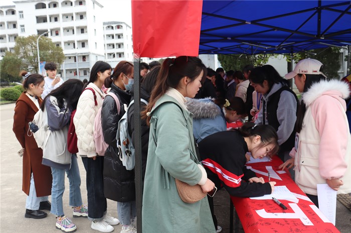 3月10日下午,校团委在一食堂对面广场开展“雷锋英雄事迹”宣传活动暨志愿签名活动,百名学生参与其中。