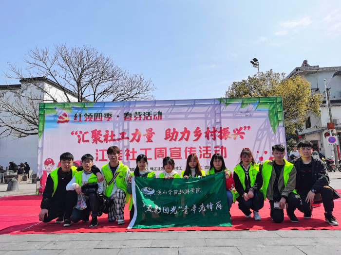 3月14日,旅游学院“五彩团光”志愿服务团队携手睿泽社会工作发展中心受邀参加休宁县江淮社工周宣传活动并开展志愿服务。