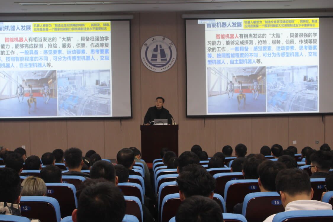报告讲述有关智能机器人的发展、功能全名解释、具备的要素以及智能机器人的前景和多方面的应用等。訾斌教授还分享了自己的科研历程和从教经验。报告会后,訾斌教授与参会的师生进行了交流。訾斌教授的此次讲座给师生们留下了深刻印象,引发了师生们对智能机器人技术热烈讨论,激起了师生们的强烈兴趣。