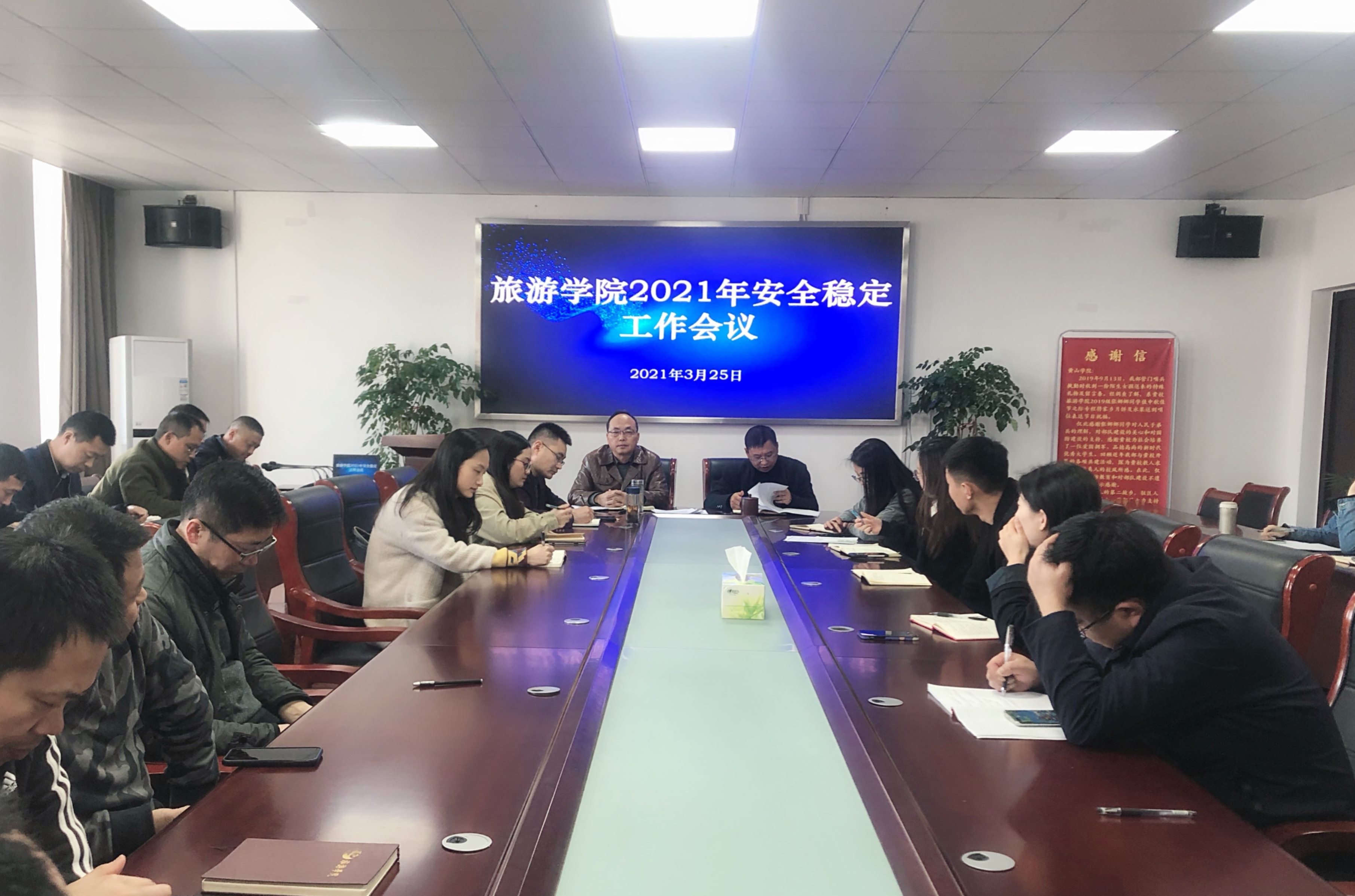 3月25日下午,旅游学院在文思楼会议室召开2021年安全稳定工作会议,该院党委书记陶卫平,院党委副书记、院长金声琅,副院长孙克奎出席会议,学院全体教师和辅导员参加会议,会议由陶卫平主持。