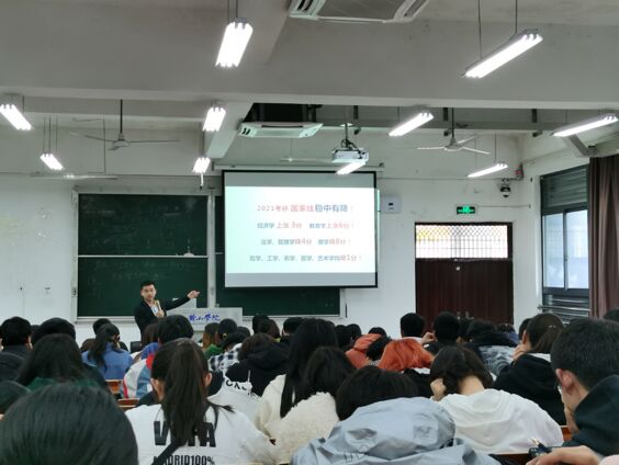本次讲座由文都考研指导教师於广源担任主讲。他首先就考研现状进行了详细的分析,并结合大数据向大家阐述了目前的考研人数及各高校的招生趋势。其次,於老师为同学们逐科分析了考研各个科目的重点、难点以及考点,向大家提供了正确的复习方法和备考策略,并分享了考研成功学生的心得视频。最后,同学们还就学习中遇到的难题和困惑与老师进行了深入交流。