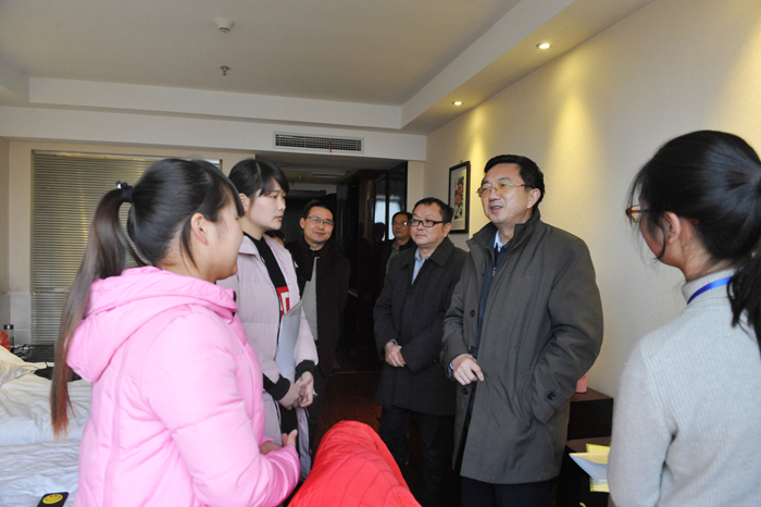 校领导每到一处,都关切地询问工作点师生几天来的工作、生活情况,实地了解他们的住宿条件,认真听取他们在工作中遇到的问题和感想。校领导充分肯定了参与监测评估工作的师生不顾风吹雨打,不畏严寒,不分昼夜,进村入户的工作态度,希望大家继续保持细致扎实的工作作风,高质量、高水平完成此次监测评估任务。校领导对参评学生提出殷切期望,希望大家珍惜这次参与社会实践的难得机会,虚心学习,充分运用专业知识,把自己的能力发挥出来。同学们表示,虽然监测评估工作比较辛苦,但面对生活水平相对艰苦的扶贫对象,大家更多的感受是要倍加珍惜自己的幸福生活。汪枫、汪建利叮嘱同学们要怀着一颗感恩的心,更加努力地学习,学好本领,将来回馈父母、回馈社会。