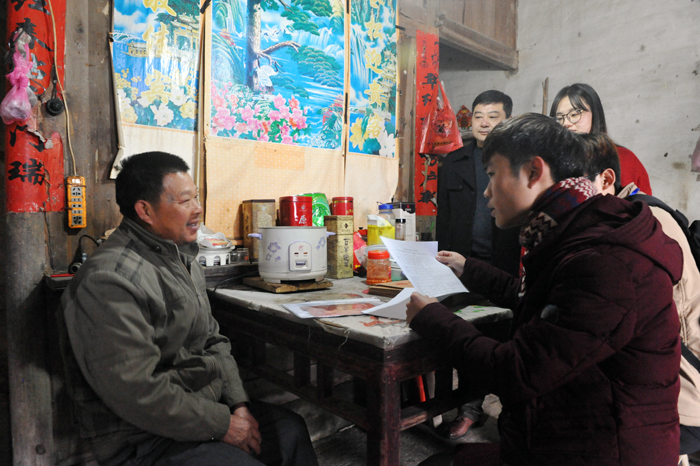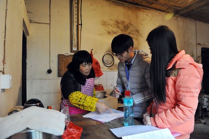 一句句暖心的家常话,一声声亲切的问候,这些是同学们进村入户与脱贫户交流时的“工作语言”。“翻译”成《安徽省脱贫攻坚脱贫户年末核查表》上的文字是“家庭人均纯收入(元)”“家庭成员是否全部参加新农合”“是否达到脱贫标准”等。面对脱贫户大多年老、文化程度不高的现状,同学们尽量用能听懂的、直观形象的口语和他们交流。