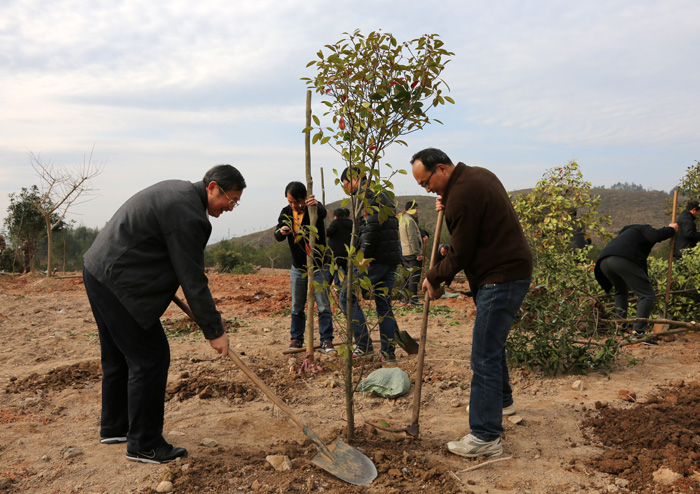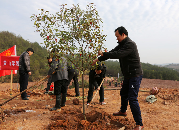 一下车,大家就立即拿起铁锹、锄头等工具,投入到植树活动当中。广大干部、教职工热情高涨、干劲十足。大家奋力挥锹,分工协作,在技术人员的指导下,在每个做好标记的地方进行栽种,现场一片热火朝天的劳动景象。大家认真完成挖坑,放树,培土,踩实树根等工序,确保树苗成活。经过近两个小时的辛勤劳动,我校教职工共栽种红叶石楠、桂花、银杏、无患子、黄山栾树等苗木200余株。大家表示,参加义务植树,为美化黄山增添新绿,为黄山市创建全国文明城市贡献自己的力量,感到十分有意义。