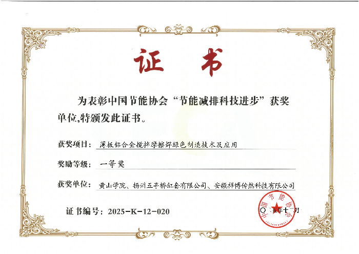 近日,由我校汪洪峰教授团队完成的“薄板铝合金搅拌摩擦焊绿色制造技术及应用”项目,荣获中国节能协会“节能减排科技进步奖”一等奖。