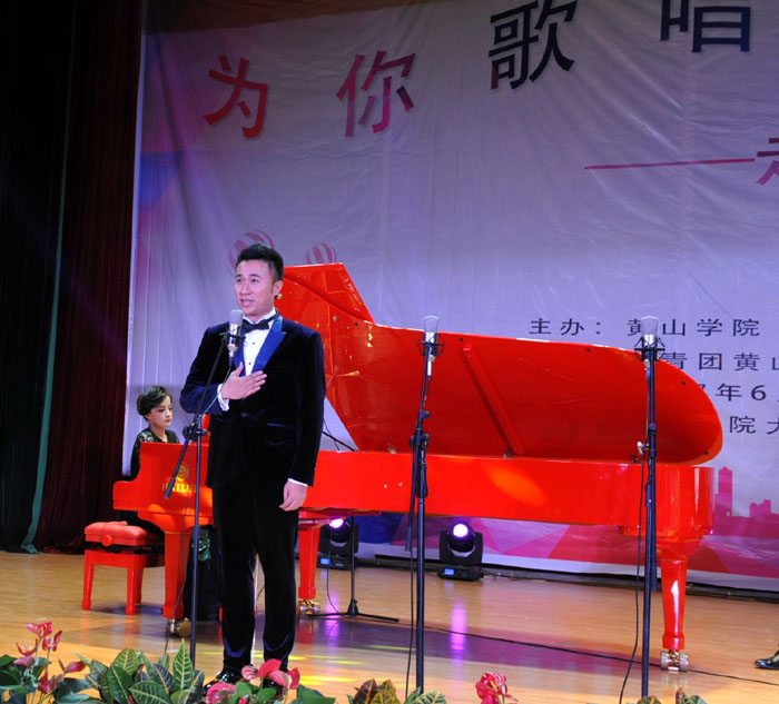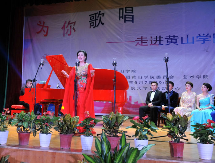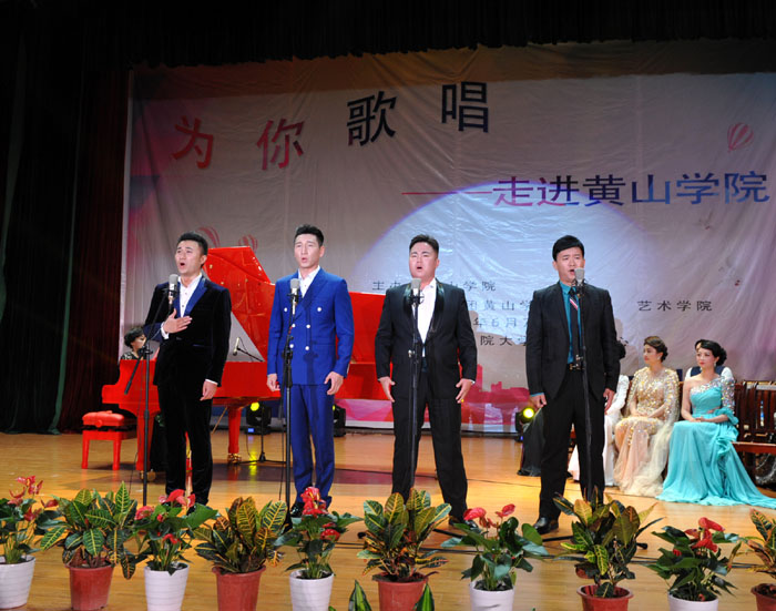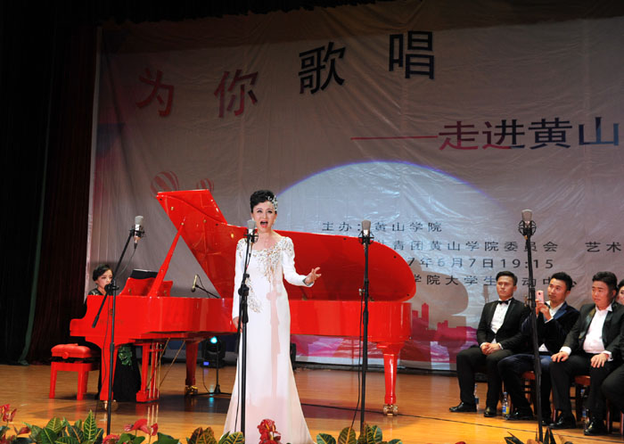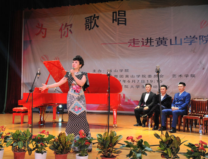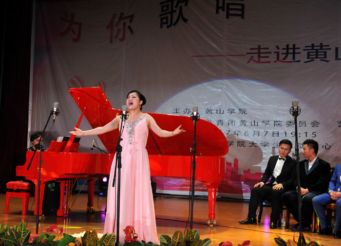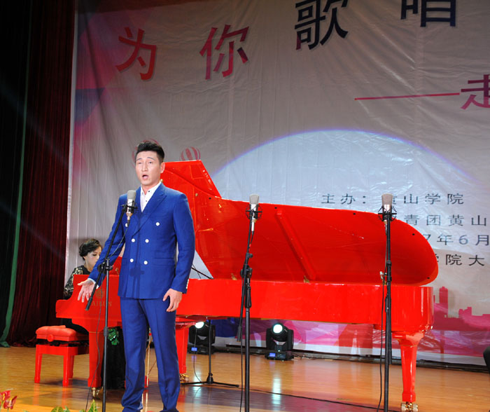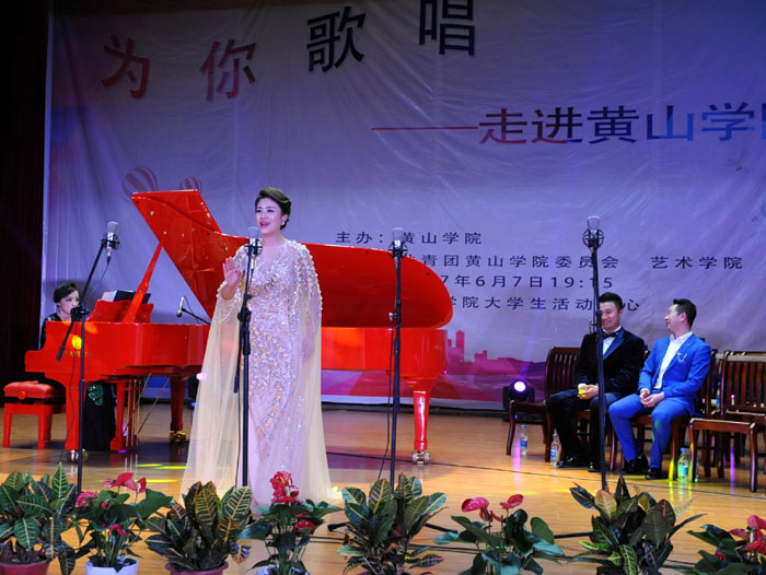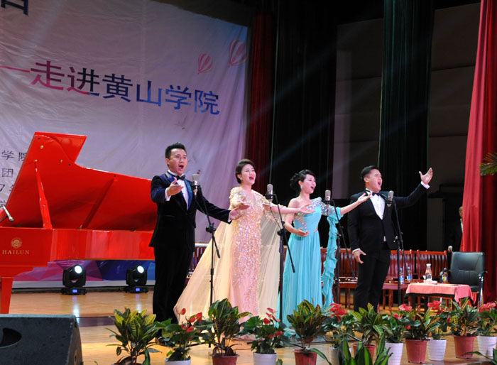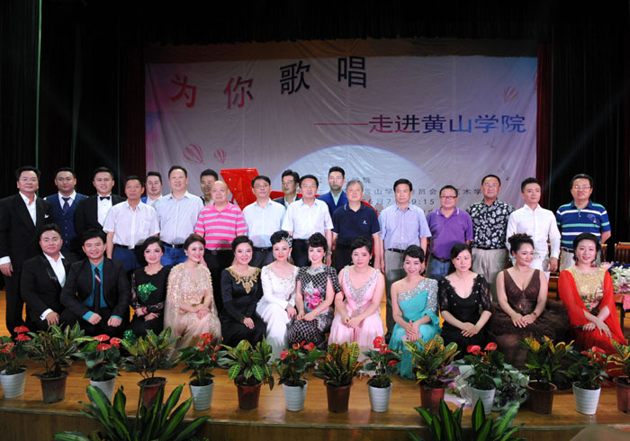 6月7日晚,我校大学生活动中心礼堂内灯光璀璨,座无虚席,“为你歌唱”音乐会在这里华丽上演。著名旅欧男高音歌唱家蔡大生带领来自全国各地的10余位青年歌唱家用饱满的激情、婉转的歌喉为我校师生奉献了一场精彩绝伦的音乐盛宴。校党委书记汪枫,校长汪建利,副校长胡家俊、胡善风、刘英旺,农行黄山分行和火箭军某部领导同我校师生共1000余人观看了音乐会。
