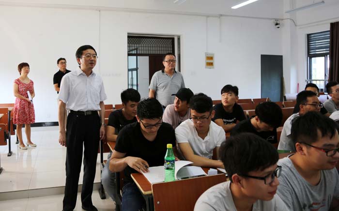 9月4日,随着熟悉的上课铃声响起,我校2017年秋季开学第一课正式开始了。上午第一节课伊始,校党委书记汪枫,副校长胡家俊、胡善风、刘英旺在人事处、教务处、办公室负责人的陪同下,对南北校区的各教学点上课情况和管理人员上班情况进行检查。