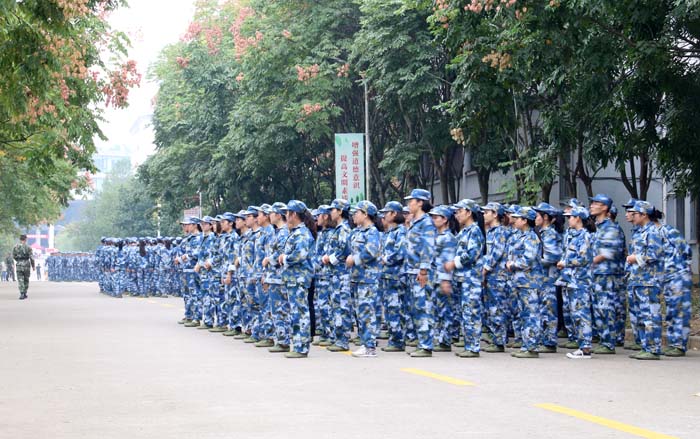 今年军训新生按军训团编制,下辖4个营,约4490人。“稍息、立正、向右看齐!”教官铿锵有力的口令声和军训队伍“齐刷刷”行进的声音交织在一起,形成校园一道流动的风景线。此次军训的训练项目有立正、稍息、停止间转法、行进立定、敬礼礼毕等。“这些项目看起来简单,但要想真正做好,还是需要狠下功夫的。”其中一位教官说道。军训期间还将开展人防、消防演练,安全教育,演讲比赛,观看国防教育电影,展板评比等活动。