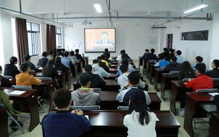 10月18日上午9时,举世瞩目的中国共产党第十九次全国代表大会在人民大会堂隆重开幕。校党委书记汪枫,党委委员、副校长胡家俊,副校长胡善风,全校科级以上干部、教研室主任、马克思主义学院教师、专兼职辅导员、学生党员代表等在逸夫图书馆二楼报告厅共同收听收看了党的十九大开幕会。
