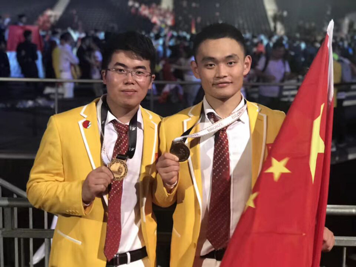 记者第一时间连线了正在阿联酋阿布扎比的孙伟、汪仕洋同学,他们脸上洋溢着夺牌的喜悦,谈到这次能代表国家参加比赛,他们深感荣幸,收获满满。