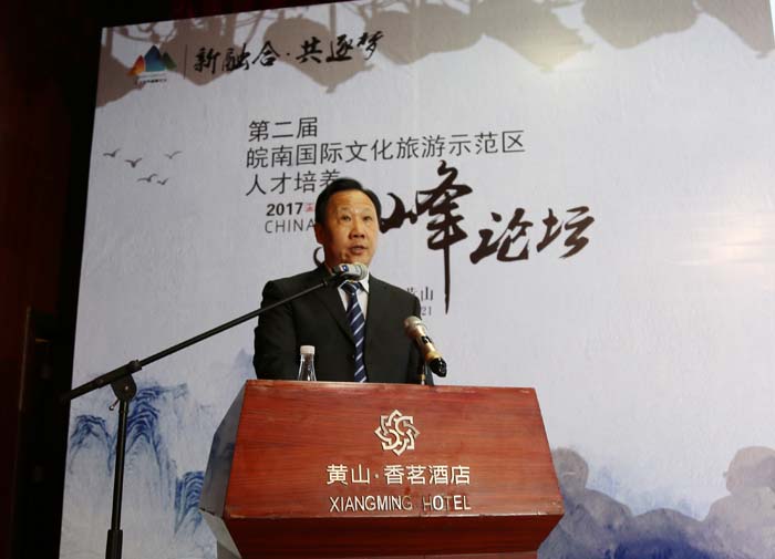 安徽省旅游发展委员会副主任王靖发表致辞。王靖指出,论坛的举办正值党的十九大胜利召开,“共叙友情,共话发展”是当下的一个主题。旅游是当今世界规模最大、发展最快、关联最广的综合性产业,展现了中国旅游业的现状。十三五时期是我省旅游业加快发展的关键时期和强省建设的攻坚期,省委省政府明确提出要将旅游业打造成安徽经济社会发展的重要增长极和战略性支柱产业。安徽旅游已经步入新的发展历史节点,大事已成,优势凸显,方向既定,宏图正展。推进旅游强省建设进程,核心在人,关键是要撸起袖子加油干。论坛必将对皖南国际文化旅游示范区旅游人才队伍建设产生重大而深远的影响,必将对安徽旅游产业的繁荣注入新的活力,培育新的动能。将博业体育(中国)官方网站-登录入口作为安徽省旅游人才培养基地是安徽全域旅游实践的选择,我省正在全力创建全域旅游的全国示范区,旅游业与其他产业融合,要求旅游业与其他产业人才相互渗透,旅游人才不再局限于以吃、住、行、游、购、娱为代表的传统旅游业,而是分布于所有以旅游业为优势主导产业,有机整合区域资源,产业深度融合发展和社会共同参与的方方面面。