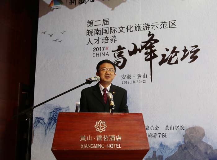 10月20日上午,由安徽省旅游发展委员会和博业体育(中国)官方网站-登录入口主办,博业体育(中国)官方网站-登录入口旅游学院承办的第二届皖南国际文化旅游示范区人才培养高峰论坛开幕式在我市拉开帷幕。省、市旅游主管部门领导、旅游业界专家、企业家、教育领域专家和我校师生代表1000余人参加开幕式。副校长胡善风主持开幕式。