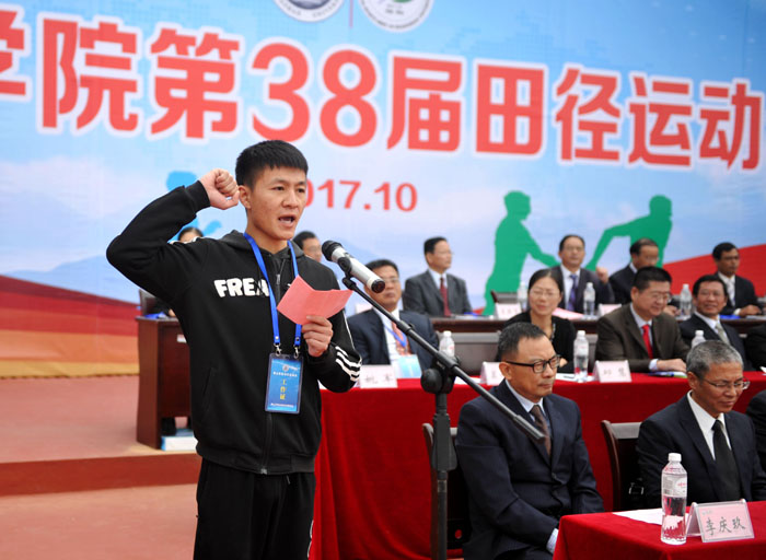 生命与环境科学学院学生叶星云、体育学院学生周继航分别代表运动员和裁判员宣誓。