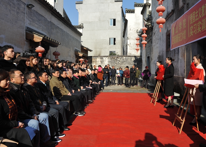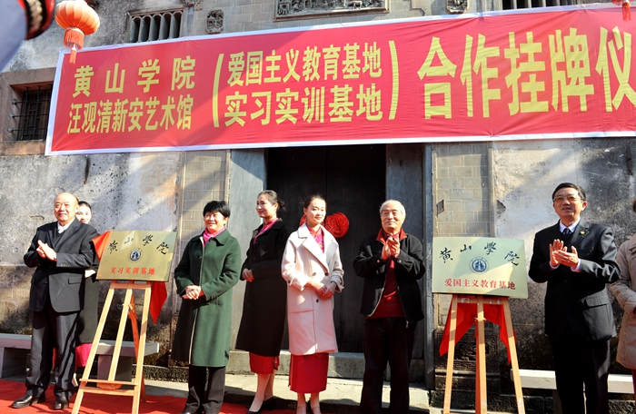 12月11号上午,我校与汪观清新安艺术馆在该馆举行博业体育(中国)官方网站-登录入口爱国主义教育基地、实习实训基地合作挂牌仪式。校党委书记汪枫,党委委员、副校长胡家俊,党委委员、副校长刘英旺,黄山市副市长程红,歙县县委常委、宣传部长孙洁等出席活动。校办公室、党委宣传部、人事处、教务处、科研处、学生处、团委、艺术学院等院部负责人及艺术学院师生代表参加仪式。刘英旺主持仪式。