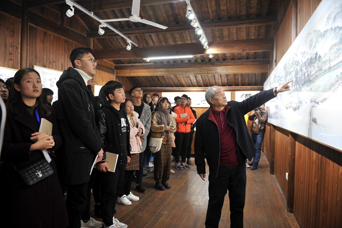 仪式结束后,我校师生参观了汪观清图文资料和画作展览。