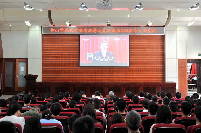 5月4日上午10时,纪念马克思诞辰200周年大会在北京人民大会堂隆重举行。中共中央总书记、国家主席、中央军委主席习近平在大会上发表重要讲话。我校在逸夫图书馆二楼报告厅组织干部师生集中收听收看大会实况。校党委书记汪枫,党委委员、副校长胡家俊,副校长胡善风,党委委员、副校长刘英旺,全校科级以上干部、各党支部书记、马克思主义学院教师、专兼职辅导员、学生党员代表等共同收听收看大会实况,聆听习近平总书记重要讲话。校团委组织习近平新时代中国特色社会主义思想青年研习社成员及部分学生代表在团委会议室集中收听收看并进行了座谈。