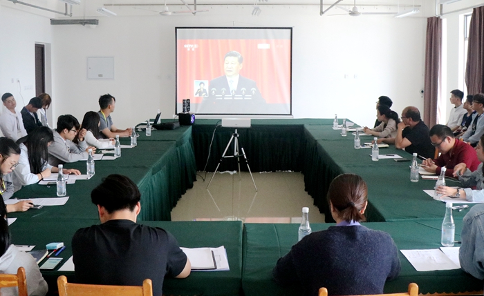 在观看大会直播盛况的过程中,大家认真聆听,不时在笔记本上写下自己的心得体会。