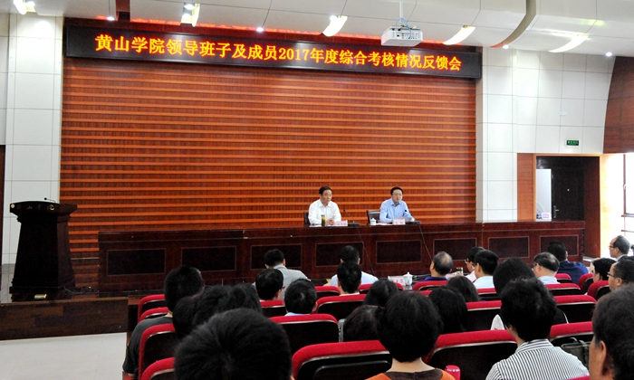 5月28日下午,我校领导班子及成员2017年度综合考核情况反馈会在逸夫图书馆二楼报告厅召开。省委综合考核组第二十一组组长、省政协社会和法制委员会原副主任刘志祥,综合考核组成员省委组织部办公室副调研员杨骏、省教育厅教科院副院长王光厚等一行3人出席反馈会。校党委书记汪枫,副校长胡善风,党委委员、副校长刘英旺和机关部门领导班子成员,学院党政正职(含主持工作的副职),省级以上“两代表一委员”,民主党派市级以上主委,学校教代会执委,正高以上职称人员以及学生代表参加了会议。综合考核组反馈了我校领导班子及成员2017年度综合考核情况,宣布我校领导班子综合考核获“优秀”等次。会议由汪枫主持。