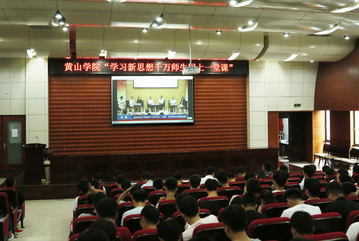 为深入学习宣传贯彻习近平总书记在北京大学师生座谈会和纪念马克思诞辰200周年大会上的重要讲话精神,6月5日上午,由教育部主办,安徽省委教育工委、省教育厅承办的全国高校“学习新思想千万师生同上一堂课活动”安徽省启动仪式及首场授课在安徽大学举行。党委书记汪枫、党委部门负责人、各党组织书记、辅导员、马克思主义学院教师、学生代表共700余人在逸夫图书馆二楼报告厅通过网络直播集中收看了启动仪式、首场讲师团巡回授课和下午的专家访谈网络直播。