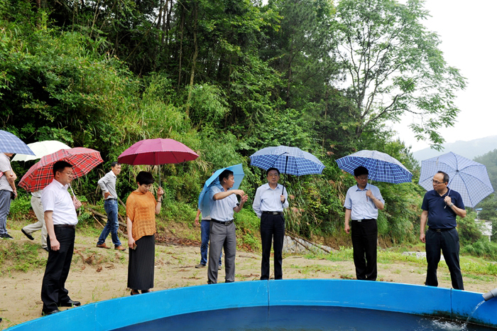 会后,汪枫一行实地考察了流水养鱼项目,并就项目养殖技术、产品销售、打造全域旅游等方面的具体工作与驻村扶贫工作队进行深入交流。