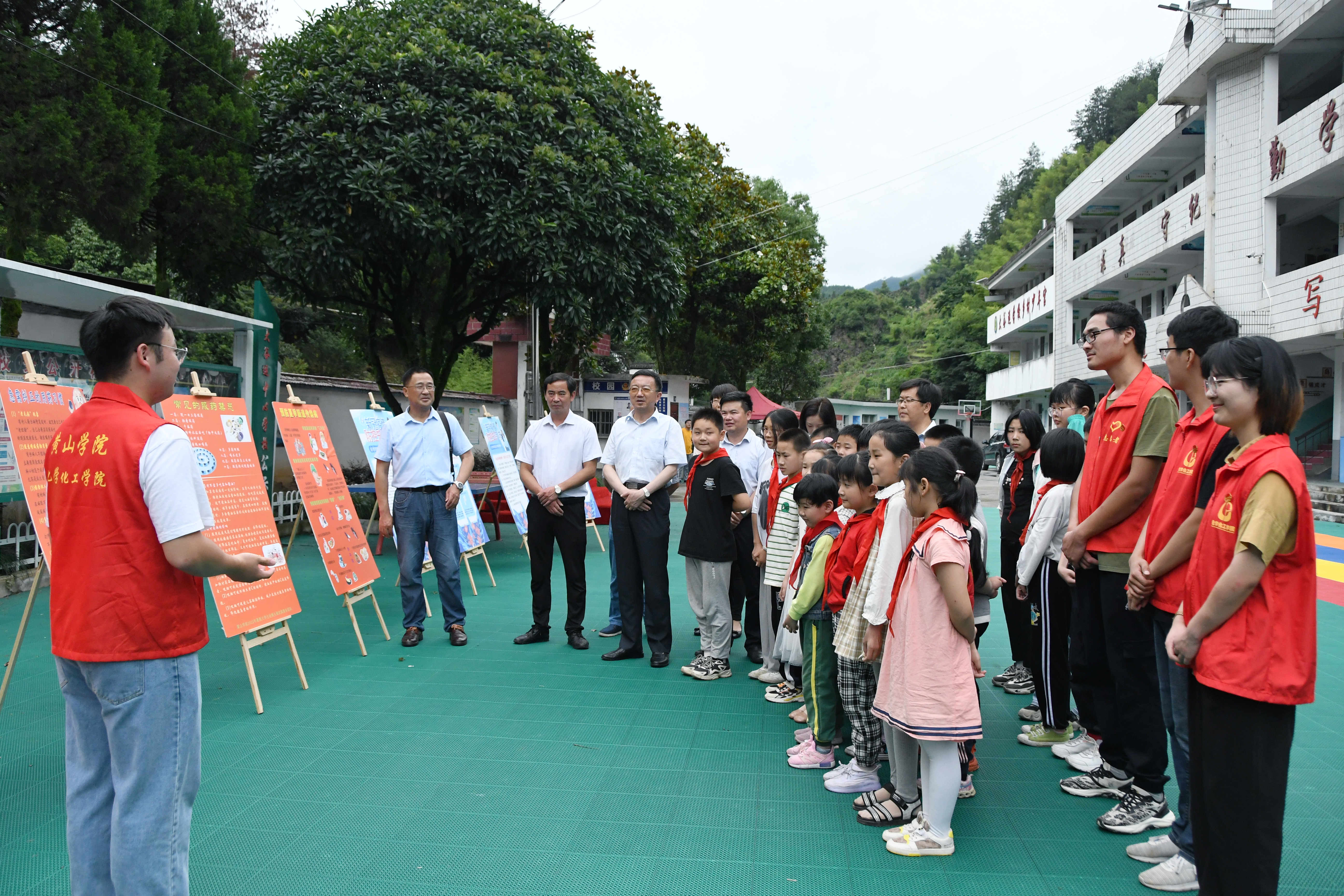 在休宁县鹤城乡,胡家俊一行看望了“走进休宁大山深处、探寻乡村振兴奋斗路”实践服务团队。该团队在鹤城乡实验学校开展防溺水知识宣传,带领学生们进行趣味科学实验,同时还对老党员进行访谈,了解当地的乡村振兴奋斗历程。在听取实践队员的汇报后,胡家俊强调,参加暑期社会实践是一次宝贵的人生经历,希望大家通过实践拓宽视野,提升专业素养,丰富理论涵养,扩大知识面,为今后走向社会奠定扎实的基础。胡家俊一行还向鹤城乡实验学校捐赠了书籍和运动器材。